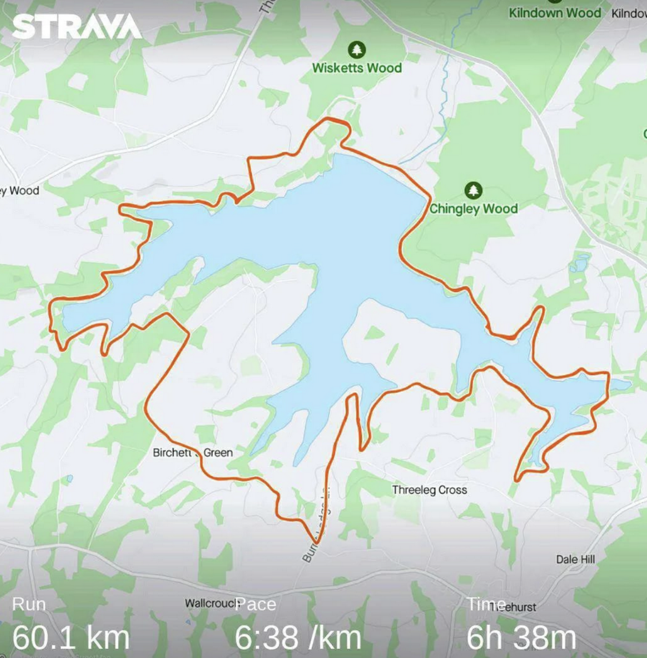 The Bewlwater 60 ultra follows the path that surrounds Bewlwater lake in Kent, UK. It is the largest stretch of water in the south east.
